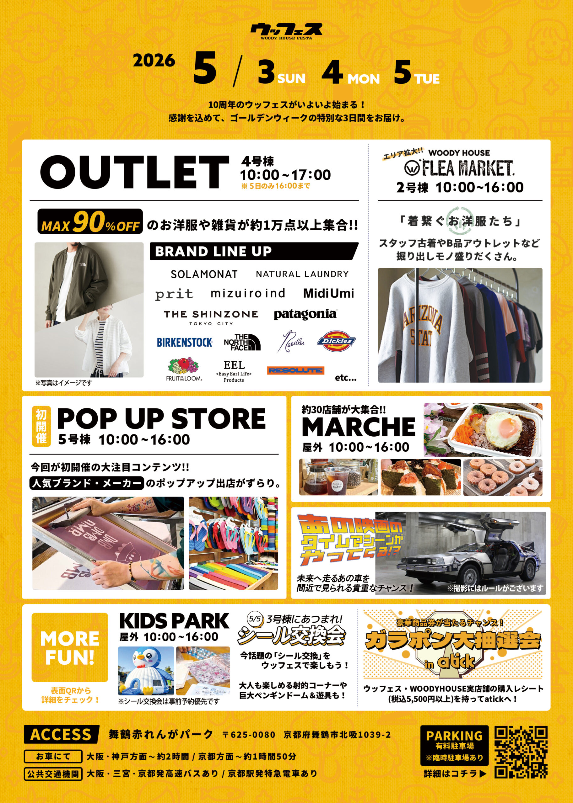 アパレルショップウッディーハウスのアウトレットSALEや、大人気ブランドのポップアップ、マルシェにキッチンカーも大集合!買い物も食べ歩きも体験も楽します。
